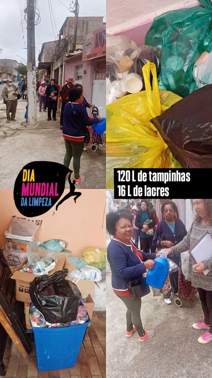 🌍✨ O Grupo Mulheres do Brasil Diadema participou da ação global do Dia Mundial da Limpeza e juntos conquistamos um grande resultado: 120 litros de tampinhas e 16 litros de lacres arrecadados!